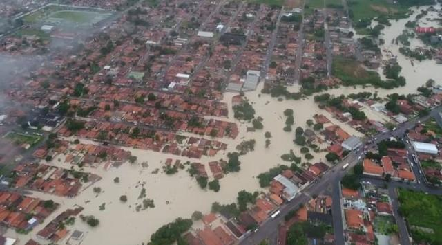 Imagem: Vista área de Paragominas: enxurrada afetou diversos bairros e deixou ao menos 300 famílias desabrigadas (Foto: Reprodução/TV Liberal)