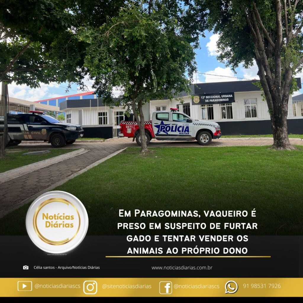 Um homem foi conduzido à Delegacia de Polícia Civil de Paragominas suspeito de envolvimento em furto de gado, após ação de policiais 19º BPM (Batalhão de Polícia Militar) que atuam na comunidade Paragonorte, na sexta-feira, dia 11 de julho.