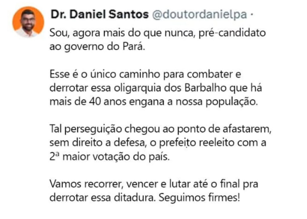 Em nota divulgada em suas redes sociais, o prefeito afastado criticou a operação, alegando perseguição política e afirmando que o procedimento liminar não lhe deu oportunidade de defesa prévia. Ele declarou que é pré-candidato ao governo do Pará em 2026 e que irá recorrer da decisão Contexto e desdobramentos.
